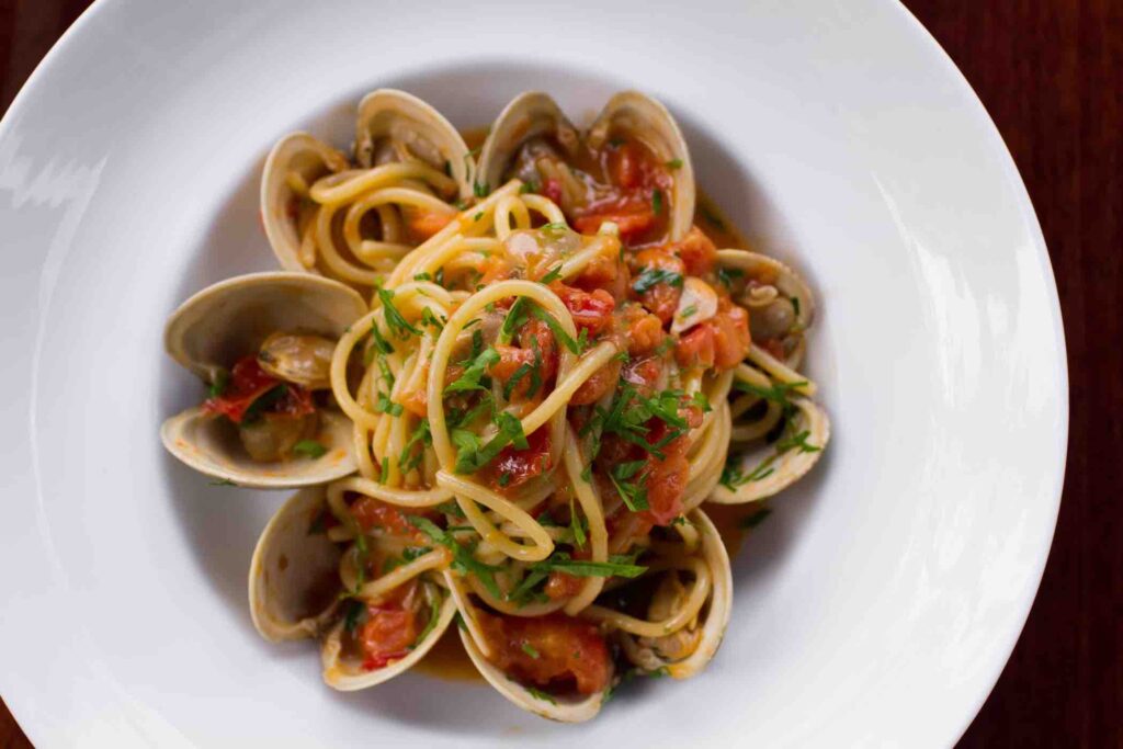 With the addition of Cuban-American chef Brian Garcia, however, some of the newer dishes reflect a sensibility to South Florida tastes, especially in the realm of seafood. One of these is a “gragnano” spaghetti, using whole wheat pasta cooked in a fish broth and tossed with a creamy blend of parsley stems, white wine, clam stock, and tiny red peppers, then layered over four types of fresh clams. A fantastic and complex explosion of flavors with a nice bite to the pasta – and no cheese in the sauce.