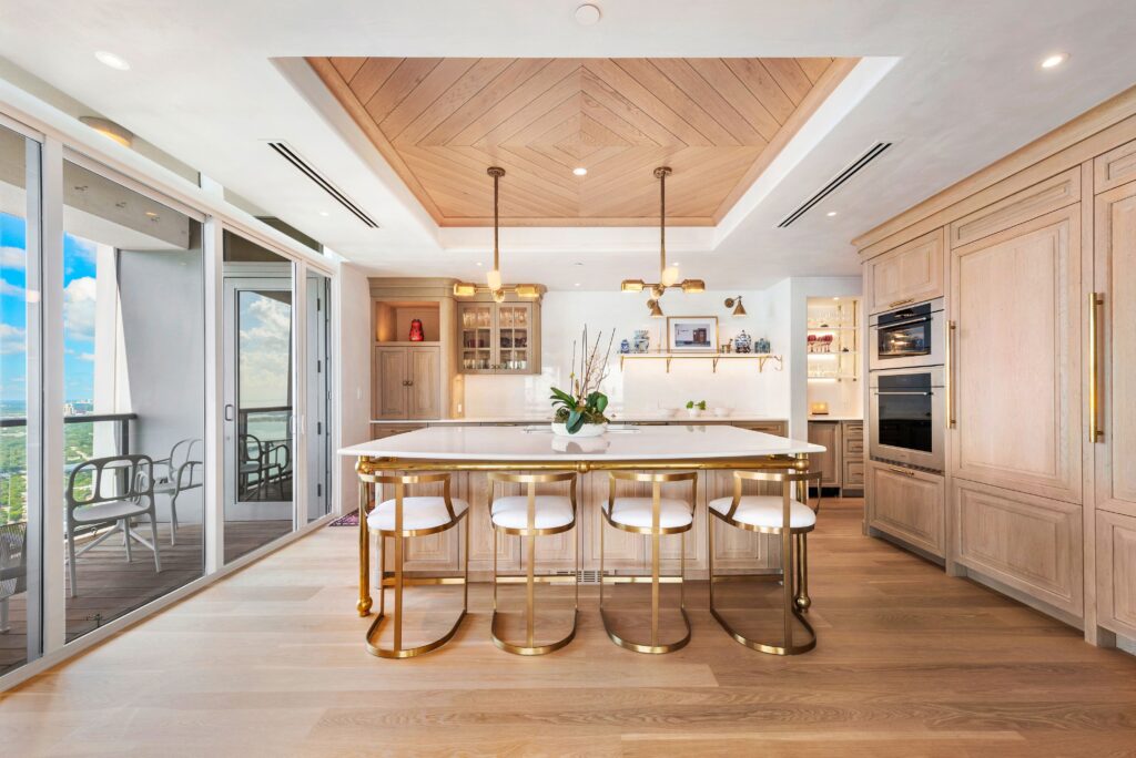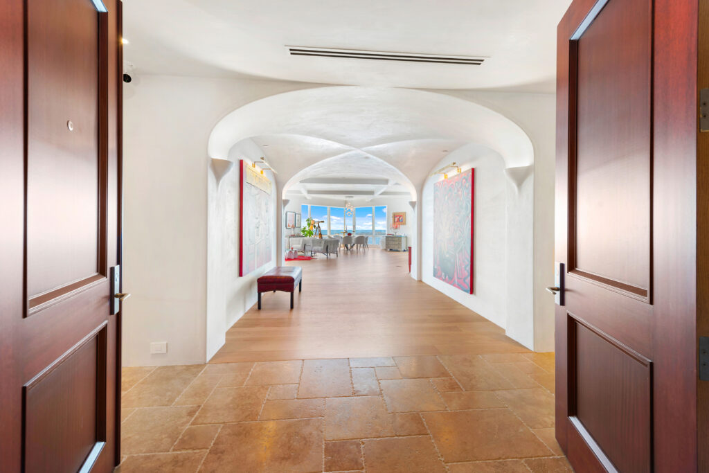 Located at the Four Seasons, CasaCielo is a down-to-the-studs renovated showpiece. With an ocean and bay backdrop, unit 55F boasts wood floors, arched ceilings and doorways, and an expanded kitchen with island. The primary suite has a walk-in closet. Other features include a cedar study with ensuite bathroom, wood paneling, a bar nook, and a large utility room. Also included are the Four Seasons’ five-star amenities.