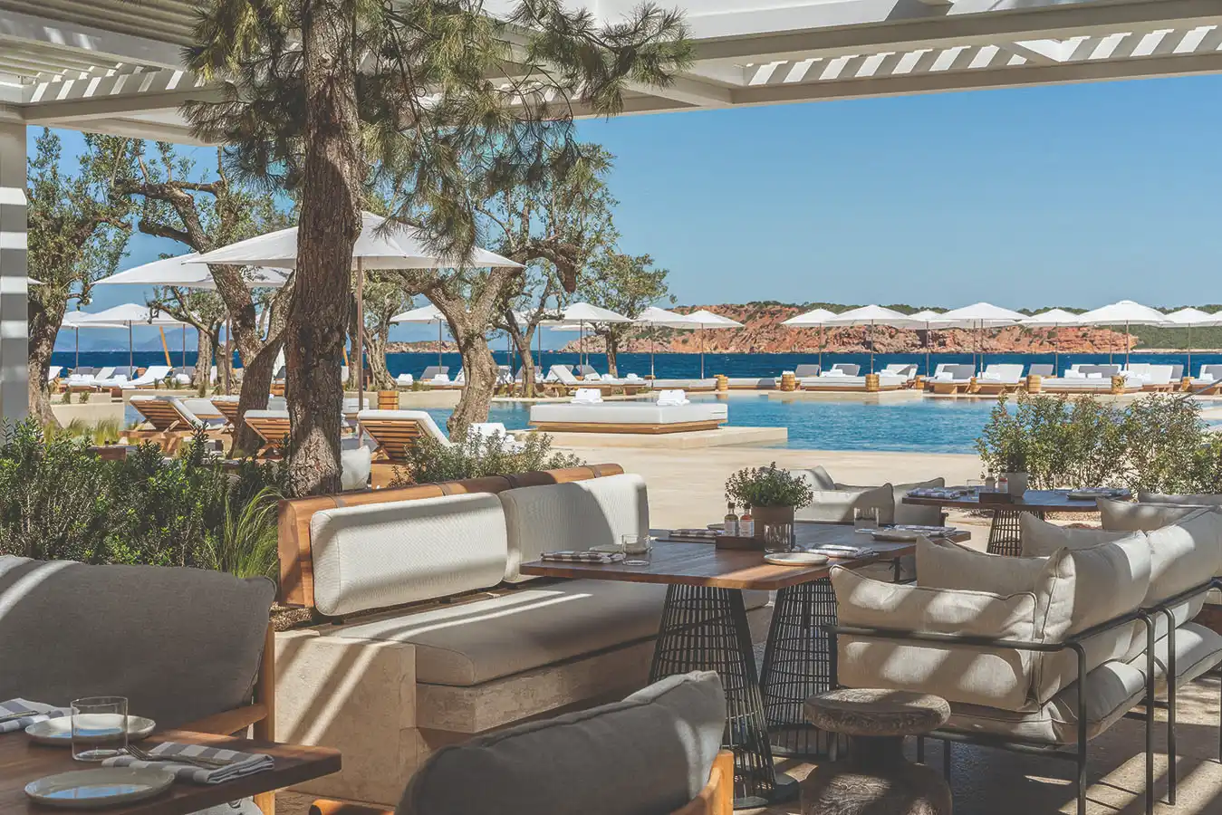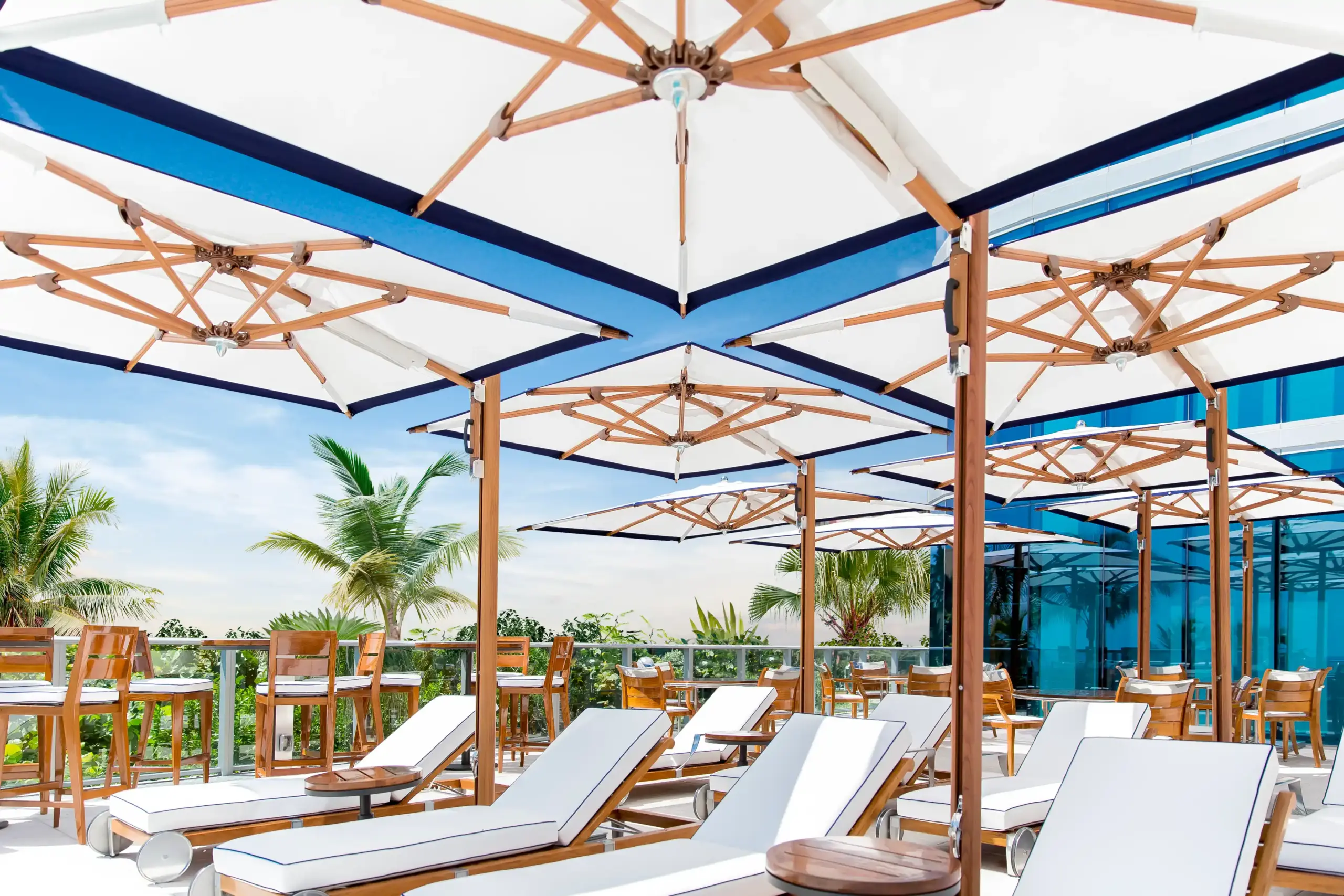 Clients are wide-ranging, from luxury homeowners to high-end resorts around the world to outdoor restaurants. Designs vary according to individual color pallets, taste, and branding, from sophisticated hotels on the Riviera to Caribbean vacation rentals. Tuuci supplies umbrellas to nearly every Starbucks location in the U.S., for example, incorporating their green color and logo. “It’s about creating destinations, whether it’s in a hospitality venue or a residential venue, and doing it in a durable and serviceable way,” says the CEO.