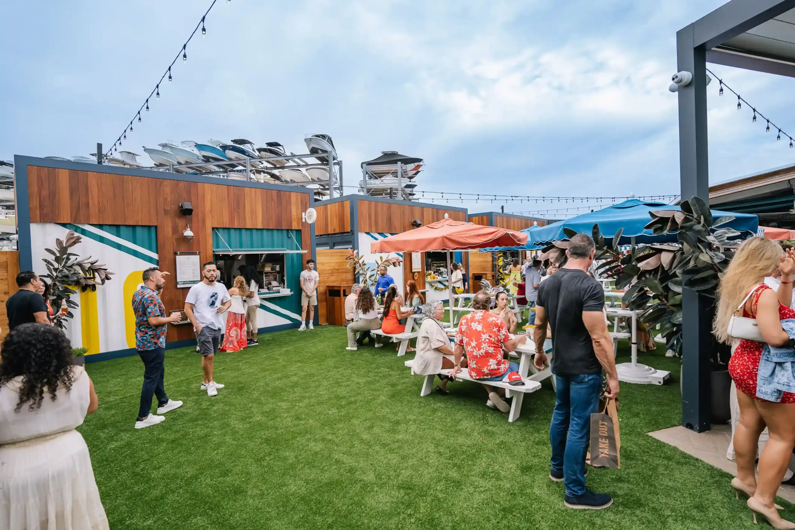 The biggest difference here is Regatta’s dining options. The culinary lineup is like something out of a foodie’s daydream, with three James Beard semi-finalists (Chefs Jose Mendin, Jeff McInnis, and Janine Booth), one Michelin-starred chef (Jeremy Ford), and one Top Chef finalist (Kenny Gilbert). Together, the five have set up small, open-air eateries at Regatta, operating out of refurbished TEU containers that surround a playful green area set up with picnic tables.