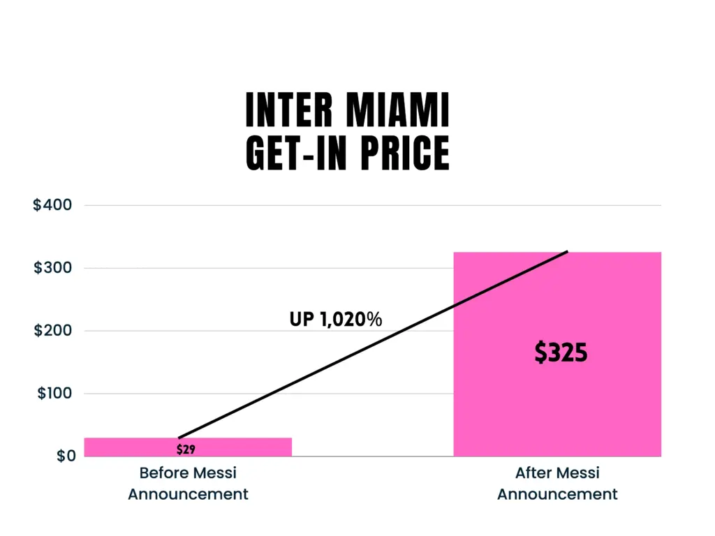 Only a few months ago, DRV PNK Stadium was much emptier. In 2022, Inter Miami had the lowest attendance in Major League Soccer (MLS) with an average of 12,637 fans per game. The average ticket price came in at around $152 and the club’s Instagram followers were steady at about one million. Nowadays, all 19,100 seats at DRV PNK Stadium are sold out, or close to it.