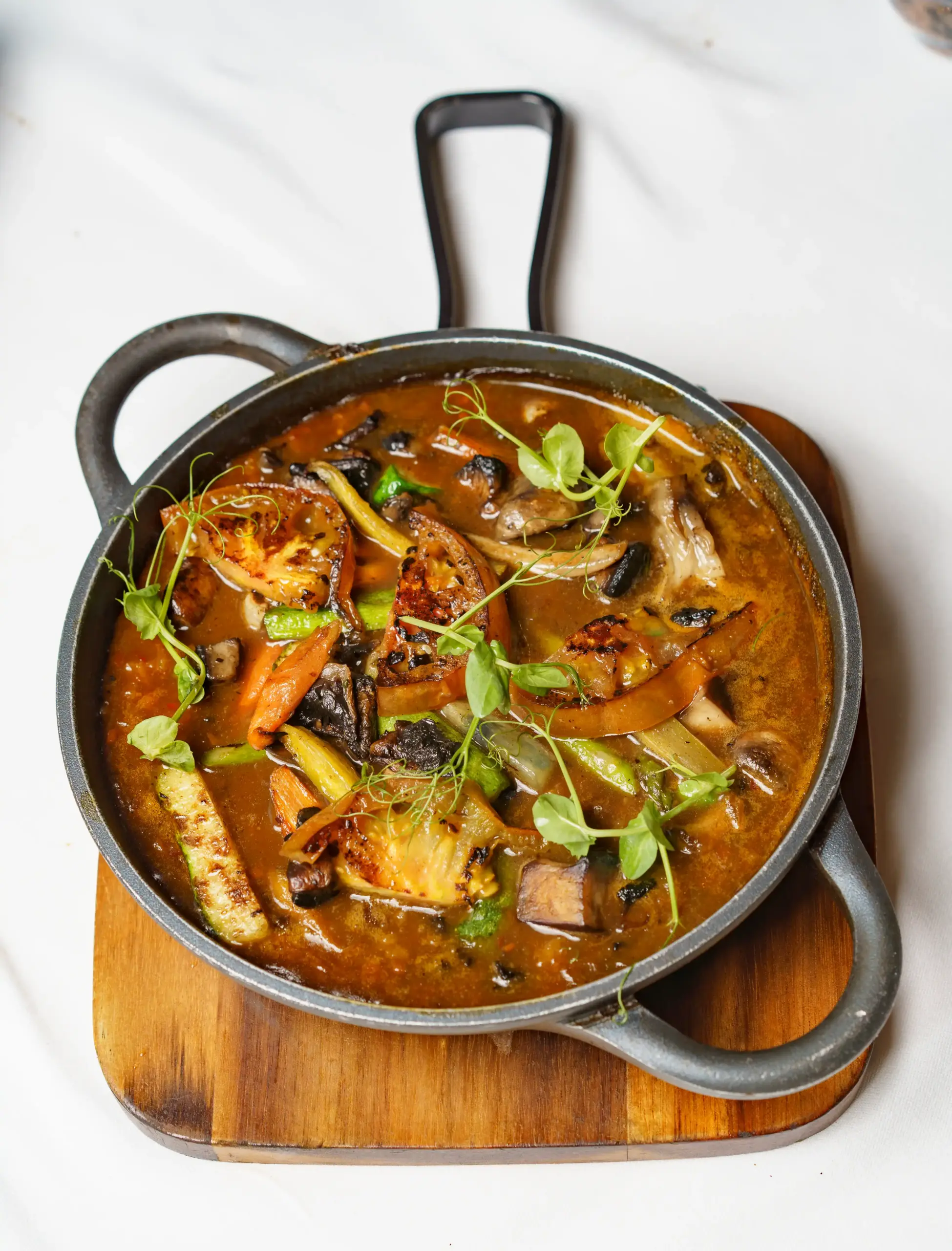 “Our rice dishes are among the most popular,” says Moredia, “in particular the socarrats, which forms a crust underneath. Socarrat means burned, and we stick it in a very special oven manufactured in Barcelona where we let the lower part of the rice burn.” We also loved our Mellow rice selection, almost a stew of slow-cooked roots and greens. “When you have a good product – a good fish or good vegetables – you have to touch it as little as possible. You have to pamper the ingredients, and when you do you will have something amazing,” Moredia says.