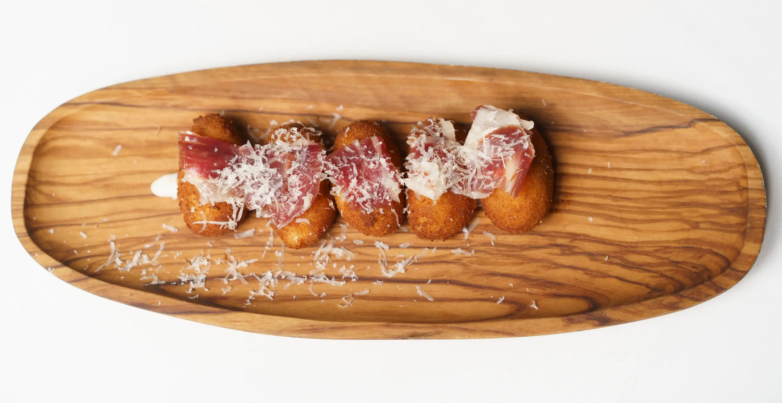 Before we reached that magnificent fish, however, we dove into the “pintxos” part of the menu, to sample these small “pierced” snacks that are especially popular in Basque country. Among these were two arrays of croquettes; one of seafood (shrimp, mussels and octopus puree inside) speared with mussels and placed on a drizzle of aioli sauce ($24), the other of pureed Iberian ham, topped with a slice of exquisite jamon Iberico pata negra and grated parmesan ($22). Both were quite good, but the ham variation reached greatness.