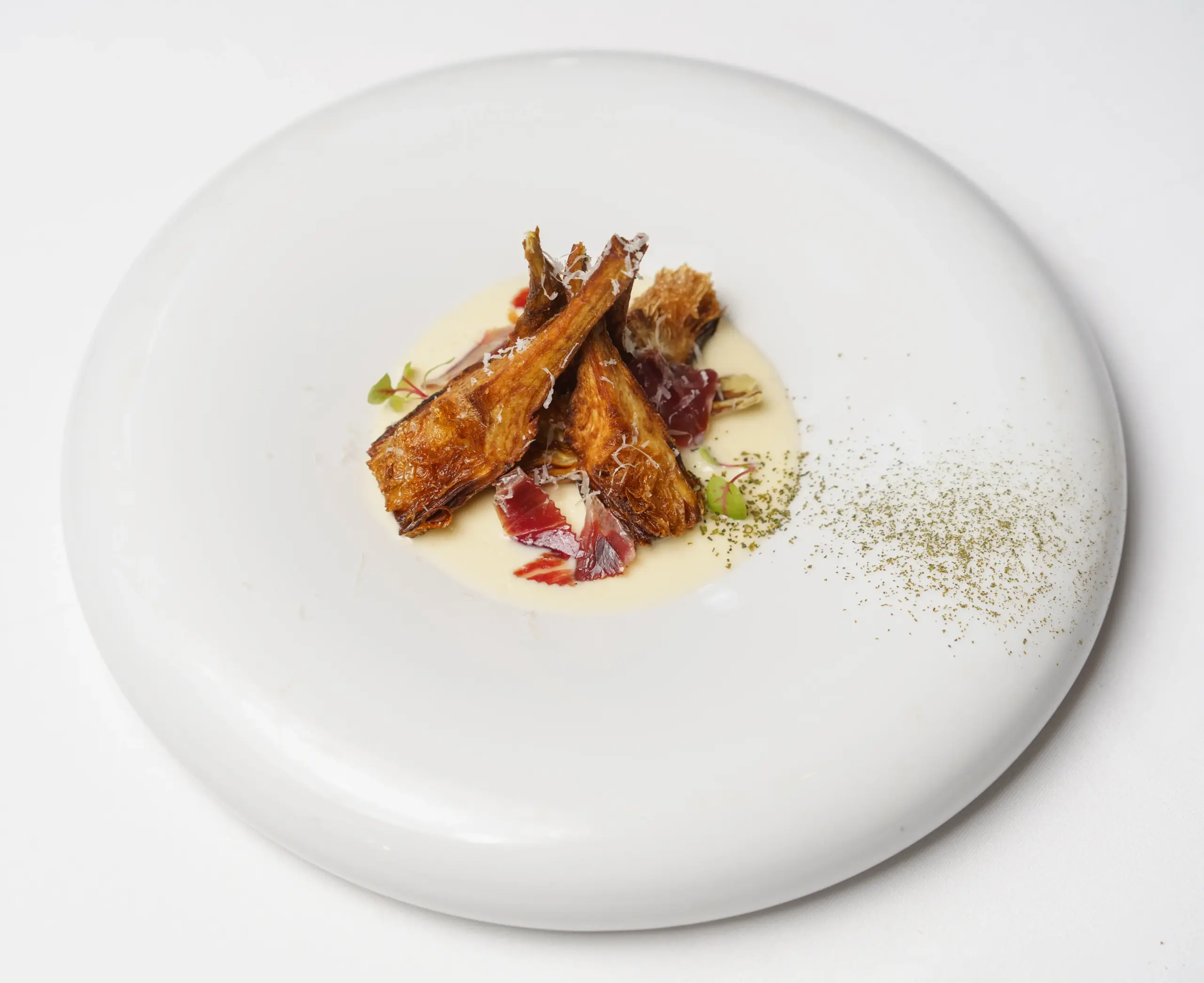 We also sampled (and were in awe of ) the Tudelan artichokes, which come from the Spanish Navarre region adjacent to Basque country. These were infused with Idiazabal – a nutty, smoky Basque cheese from sheep – and served with the precious pata negra ham ($28). These looked like small lamb chops, baked and then crisped in the oven with a last dash of parmesan cheese.