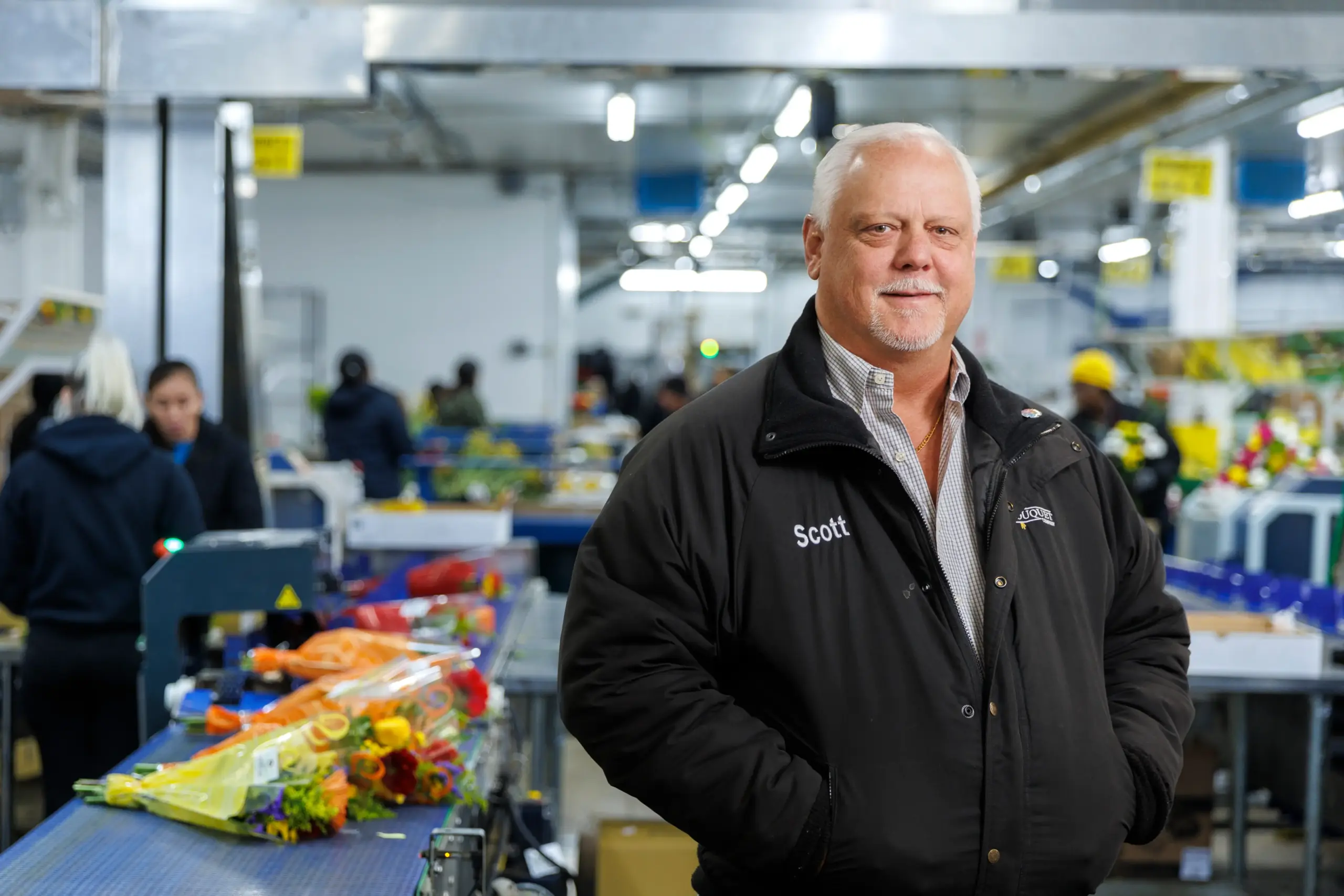 Supermarkets are now the largest buyers of fresh-cut flowers. At Publix, for example, you can easily run over after work and grab a last-minute bouquet of flowers… like the Salsa Bouquet – fresh, fun, and very Miami. And it comes from none other than USA Bouquet. Touring the facility, Hill pointed out the station that was assembling this specific product. “Those are the Salsa Bouquets from Publix. We arrange it, package it, and ship it ready to be put on shelves,” he explained as I shivered in the refrigerated cold. The bouquets even had Publix bar codes and price tags already on them.