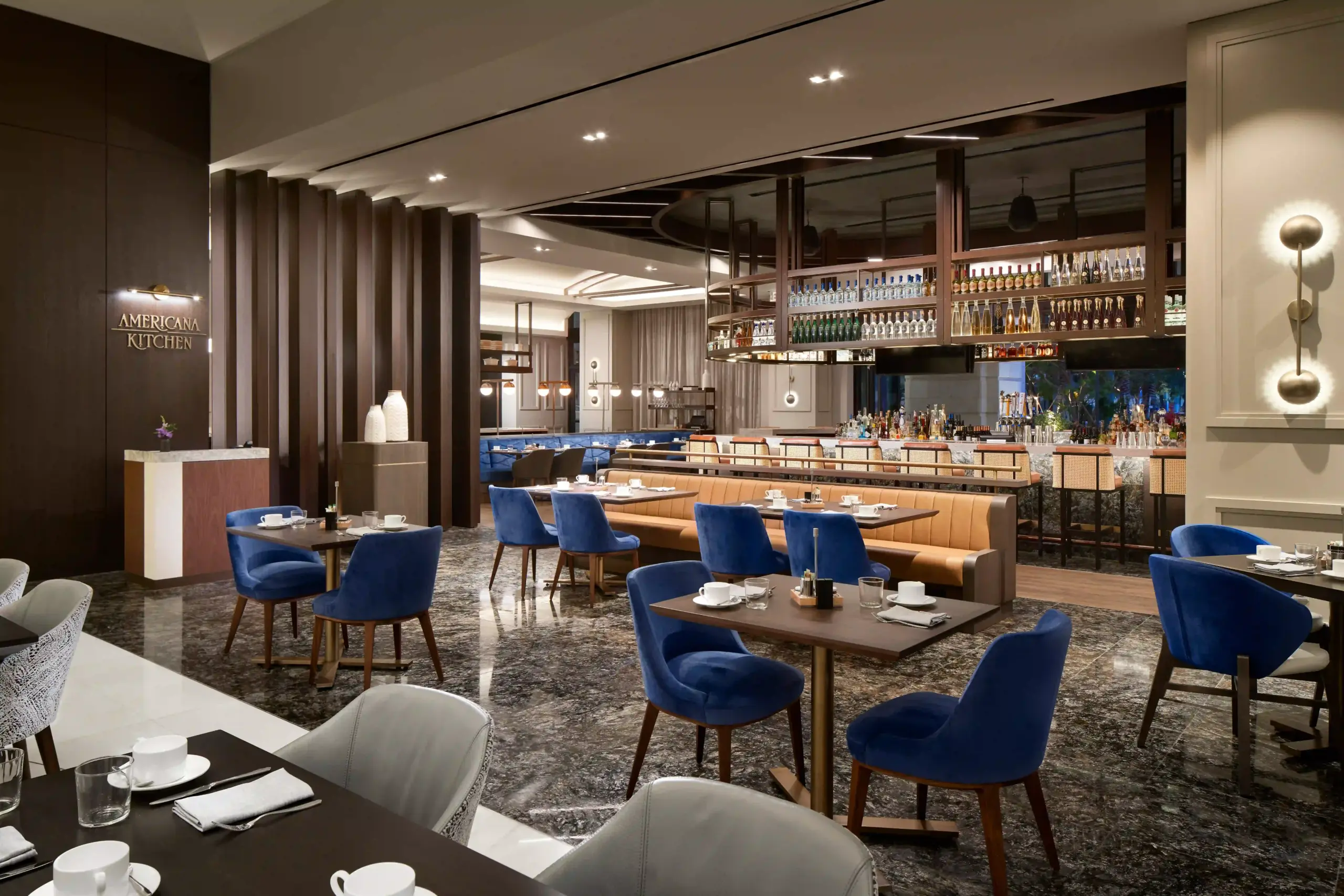 The food at the adjacent Americana Kitchen is similarly traditional, with dishes like burgers, pastas, and pizzas on the menu, but elevated to “New American” status by Chef Ricardo Jarquin’s innovative culinary approach. Jarquin oversees the entire food and beverage program for the hotel and is known for his unique approach to otherwise conventional dishes – like truffle pizza or plantain empanadas. If you manage to make it before the end of Miami Spice on October 1, we recommend the seared Florida grouper on the dinner menu, which comes with a green foam extracted from tomatoes and a side salad made from precision-sliced squash ribbons.