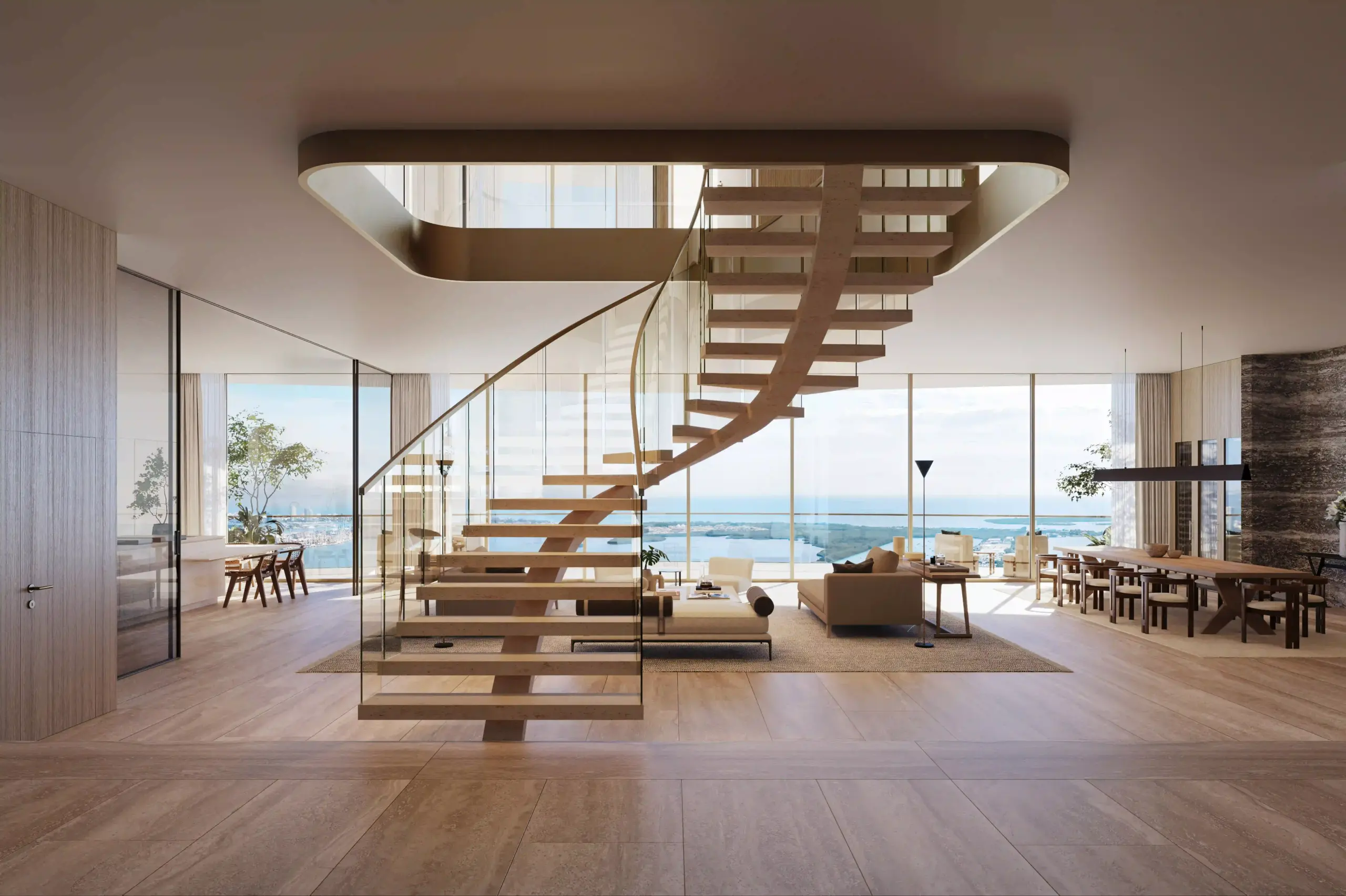 Sky Residence 02 at Waldorf Astoria Hotel & Residences features epic scenic views from larger-than-life floor-to-ceiling windows, French balconies, and expansive terraces with summer kitchens. The property will offer a holistic wellness spa and fitness center with capabilities for residents to book spa and fitness treatments through a custom mobile app.