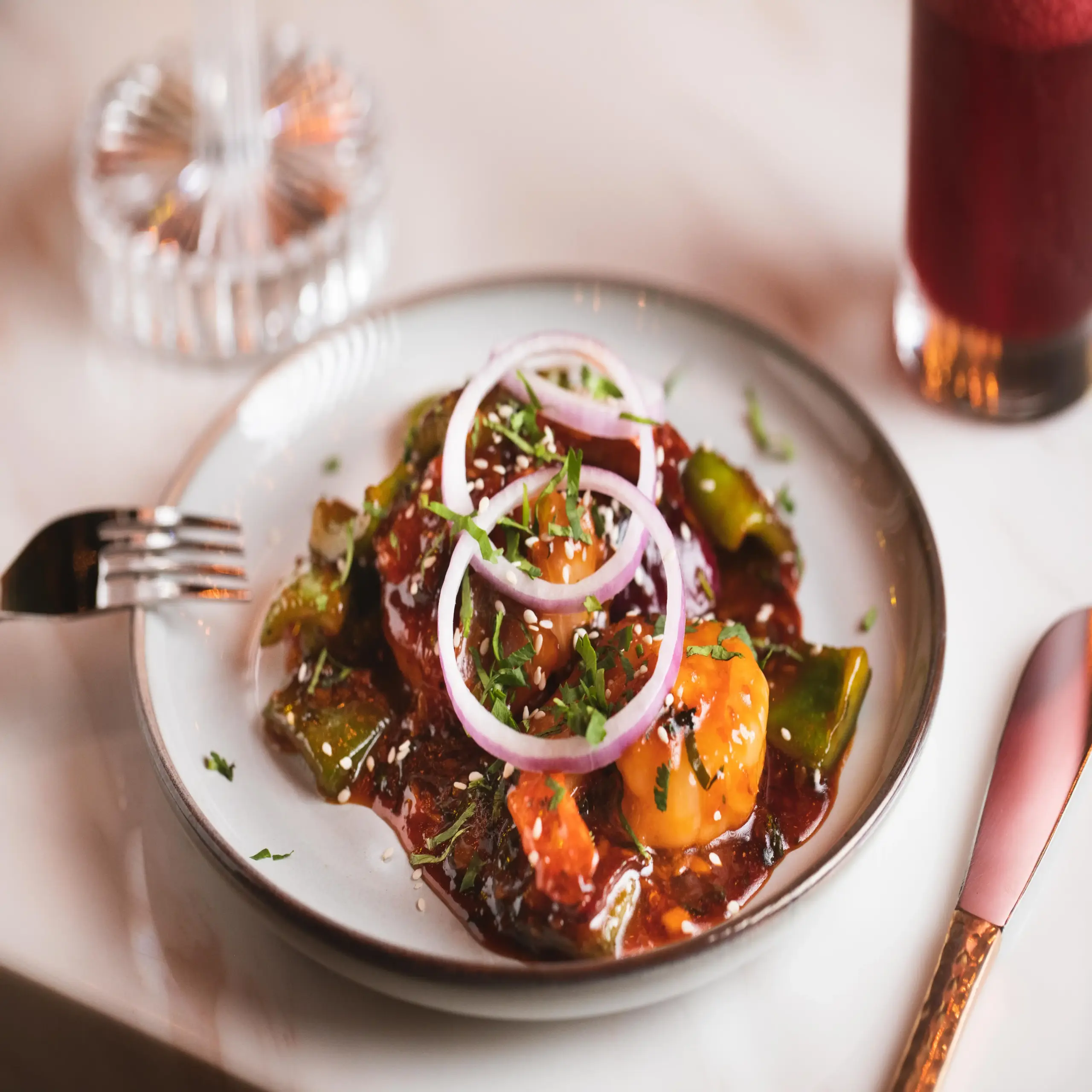 We also tried the goa chilly jheenga, sauteed shrimp with onion, green peppers, and a spicy tomato sauce. It felt a little outside the Indian cookbook – one doesn’t usually think of shrimp as an Indian staple (and these were Ecuadorian shrimp as well!) – but the chili bite was right on point, the spices deeply Indian, and the shrimp plump and succulent.