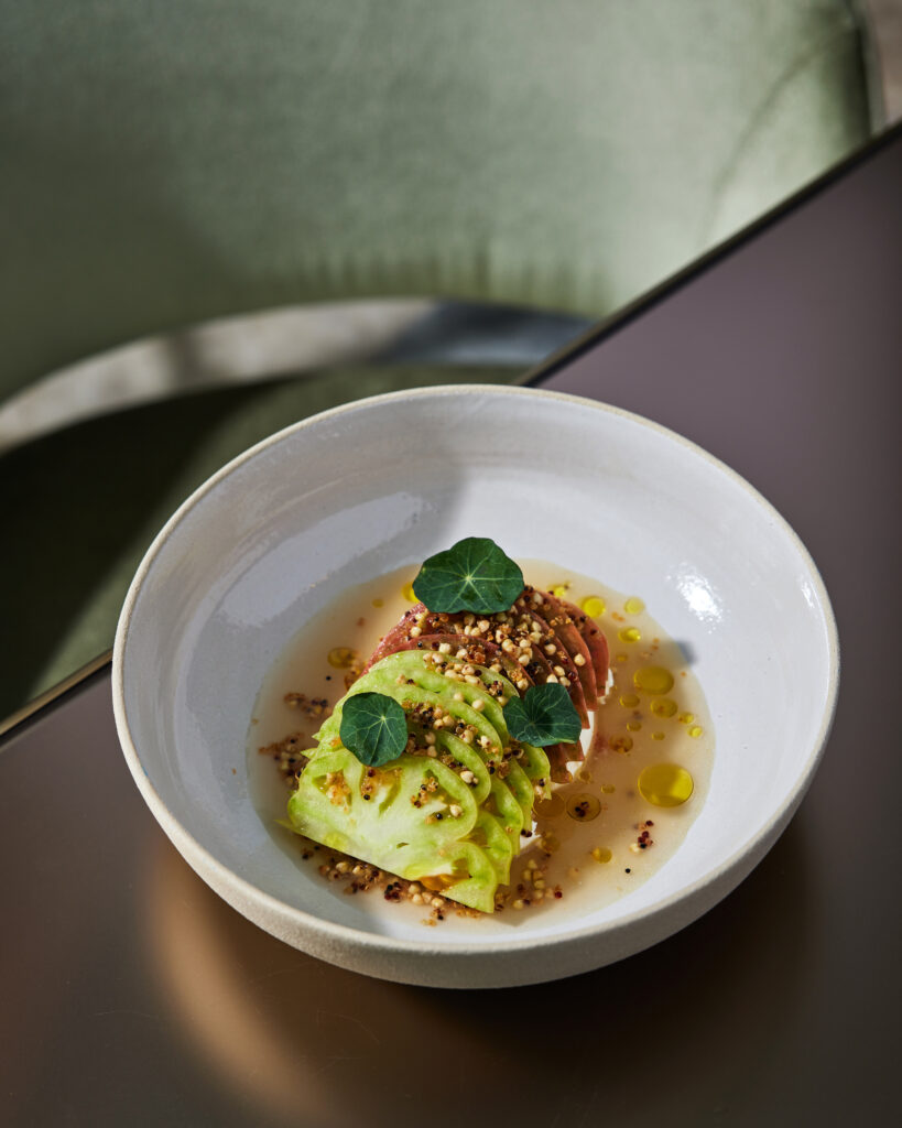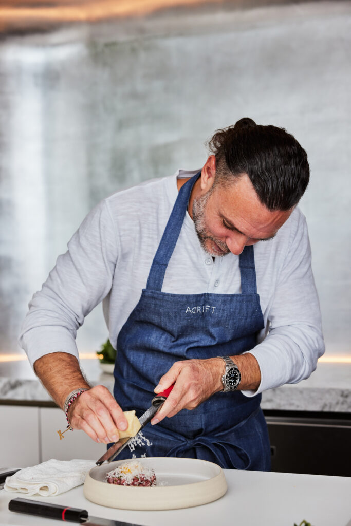 Adrift Mare is the latest creation of Michelin-starred restaurateur David Myers, also known as the “Gypsy Chef.” That sobriquet reflects both his world travels for culinary inspiration and his globe-trotting entrepreneurism; Myers now has 20 restaurants in nine cities and three continents, from Tokyo and Los Angeles to New Delhi and Doha. He has a reputation for boarding a flight every few days to check on one of his eateries and to seek new food inspirations.
