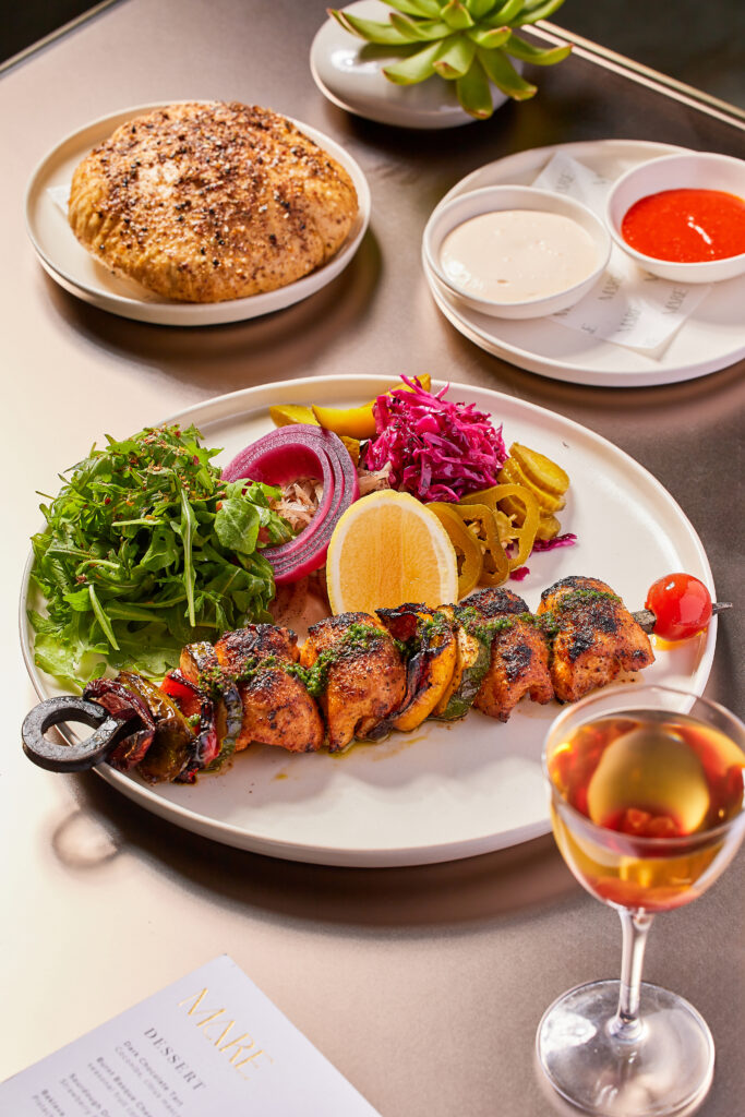 Each of Myer’s restaurants has a different theme, and the focus here is on Middle Eastern cuisine with a seafood tilt. “A lot of times when a restaurant says they’re Mediterranean it’ll just be Greek, or maybe with some Italian seafood,” says Thomas Sloan, the general manager. “But we wanted to be truly Mediterranean, with Northern African spices and Tel Aviv dishes, a kind of fusion where you still have your big hitters like shish kabobs.”
