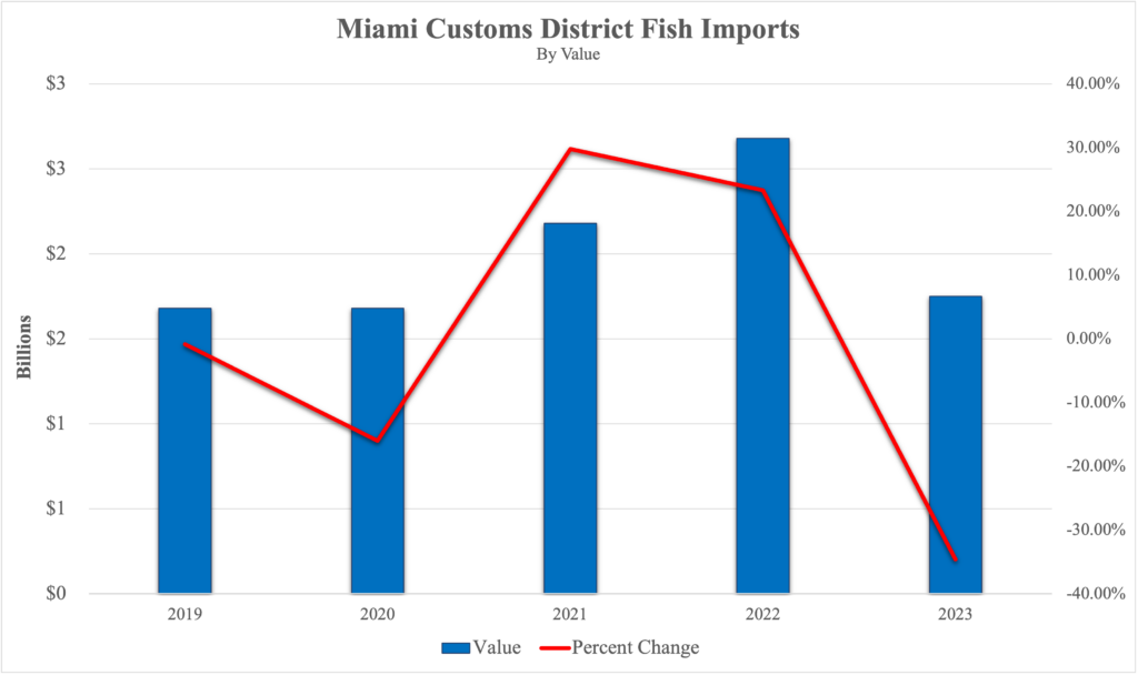 Overall, the Miami Customs District has established itself as a linchpin in the supply chain of U.S. fish imports. As South Florida charts a robust growth trajectory in this sector, it anticipates competing with Los Angeles, as Chile contends with China for dominance as the primary fish supplier for U.S. markets.