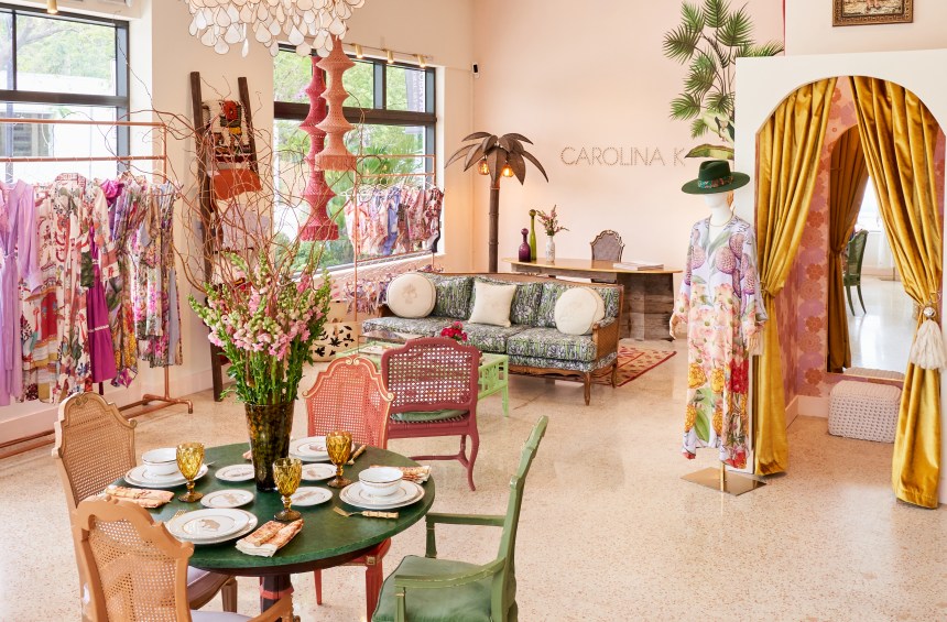 Kleinman’s Carolina K store in the Design District opened earlier this year, the culmination of her brand basing itself in Miami, which began in 2016 with a shop at Miami Beach’s posh Faena Hotel – the year she decided to make Miami the headquarters for her label. After maintaining that shop for five years and integrating herself into Miami’s budding fashion scene, Kleinman opened a studio in the city’s Little River district in 2021. The opening of her flagship Design District store in April, where she could showcase both her clothing and curated collections, felt like the natural next step.