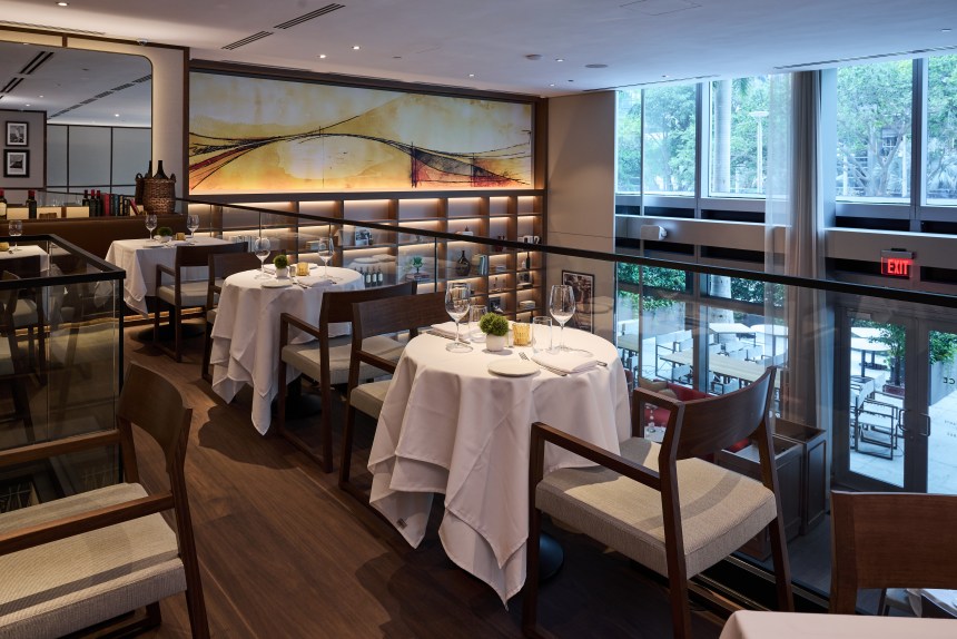 Felice also scores well with subtle house music and demure lighting, especially in the main dining room, where high ceilings and multiple clusters of sculpted lights create an airy, romantic space. You can feel comfortable here with a suit or an open-collar shirt, and the staff is friendly, knowledgeable, and efficient, just the way you’d like it in a neighborhood hangout. The wine list is well curated, but while it has some affordable prices it’s mostly for the stout of heart – not that we didn’t enjoy our $169 bottle of “Super Tuscan” Il Pino, 2022, which they decanted.