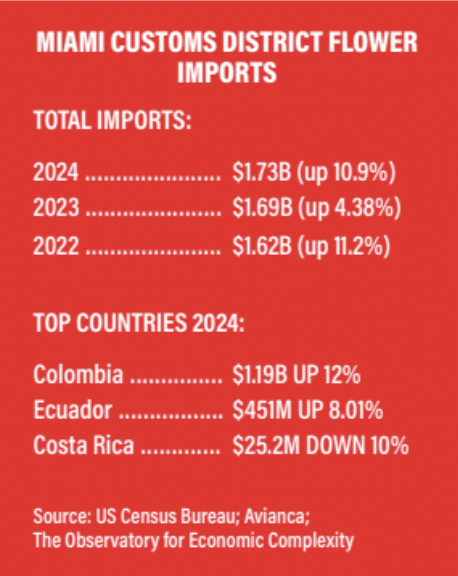 But the business of blooms extends far beyond a single holiday. The Miami Customs District, which handles more than 90 percent of all fresh-cut flower imports into the U.S., saw another year of significant growth in 2024, with total imports reaching $1.73 billion, marking a 10.9 percent increase from the previous year.