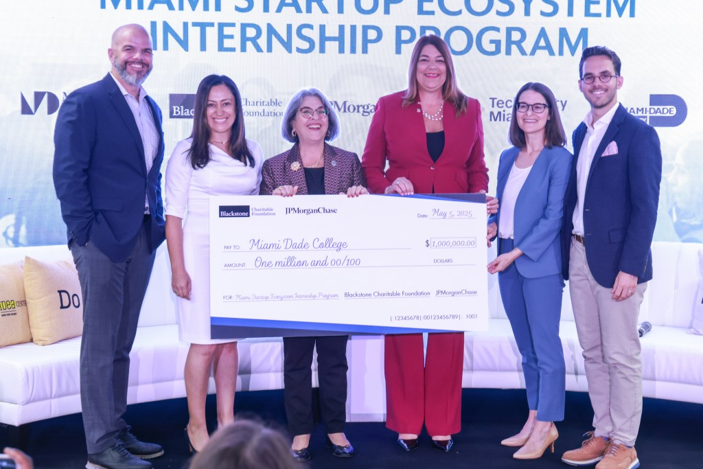 It’s Monday morning at Miami-Dade College, and an unlikely mix of people fills The Idea Center for the launch of a new business partnership. Gathered in one space are leaders of financial behemoths, entrepreneurs, corporate brass, elected officials, and lots of students. Once the DJ winds down the music, MDC President Madeline Pumariega takes the stage.