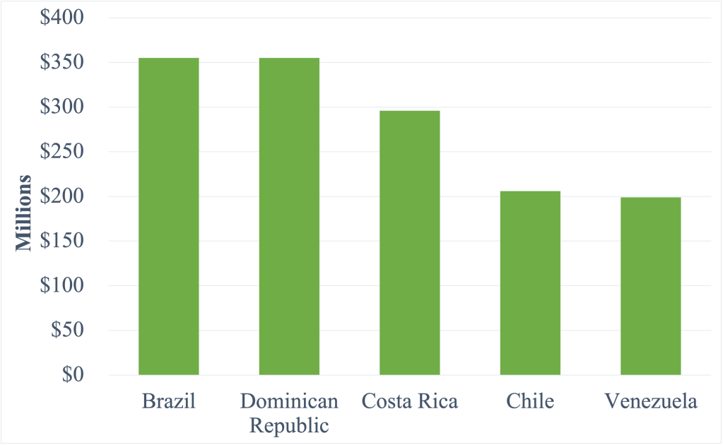 In the second quarter of 2024, the top imports of PortMiami were Rolled Tobacco ($247M), Knit T-shirts($233M), Insulated Wire ($212M), Knit Sweaters ($181M), and Low-voltage Protection Equipment ($159M). In the second quarter of 2024, the top exports of PortMiami were Cars ($140M), Pure Cotton Yarn ($101M), Motor vehicle parts and accessories ($75.4M), Centrifuges ($67.4M), Computers ($64.7M).